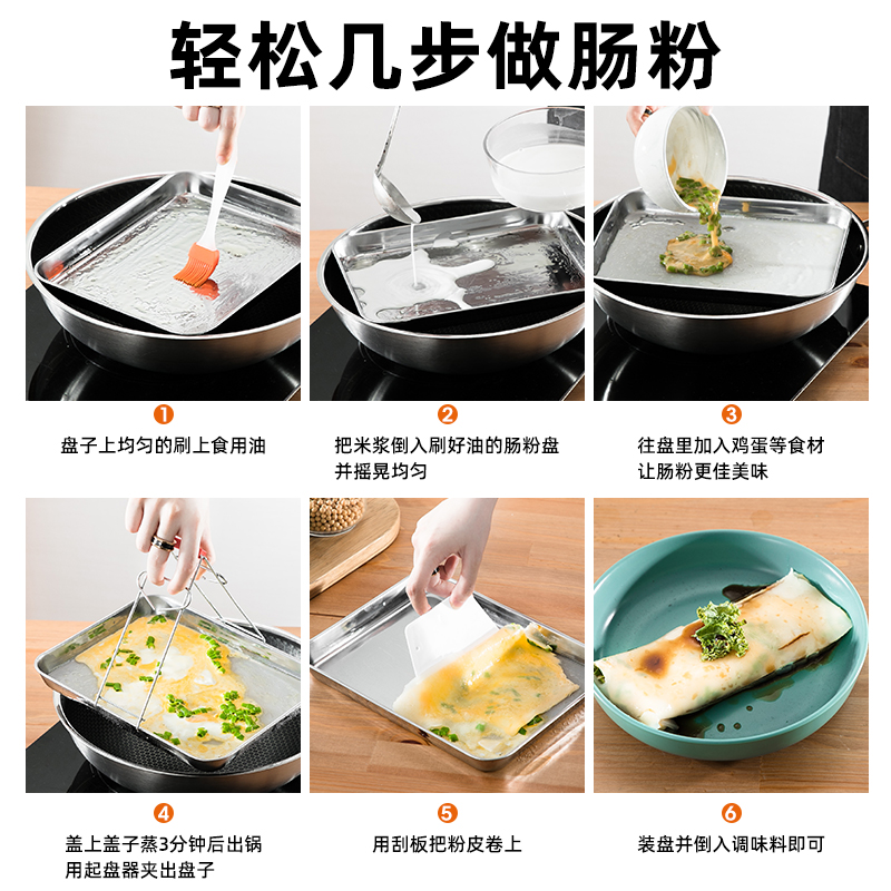 Dustpan plate steaming tray stainless steel steaming tray 305 Food grade 304 Home Intestine Powder Special Steam Pan Rectangular Flat Bottom D