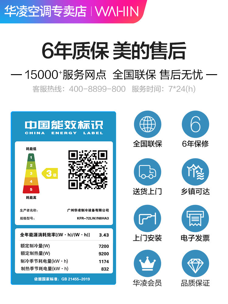 Hualing variable frequency air conditioning large 3 p vertical cylindrical cabinet machine cold and warm beautiful household power saving living room floor-standing 72A3