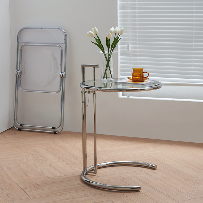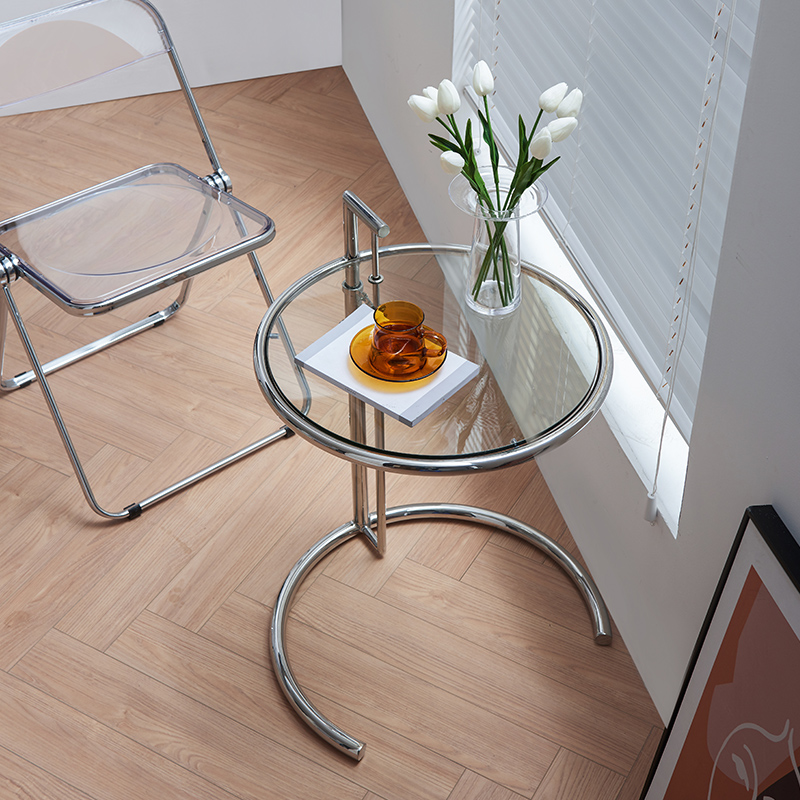 Nordic medieval lifting coffee table stainless steel glass round table modern sofa side a few things net red corner table