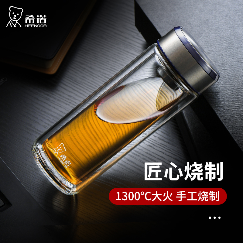 Shino glass cup official web double layer insulation portable water glass for men and women upscale business transparent tea cup