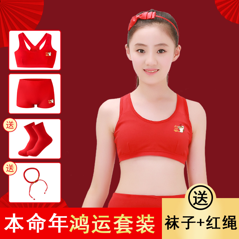 Girl's Life Year Big Red Lingerie Suit 12 Year Old Girl Student Bra Red Festive Vest Underwear