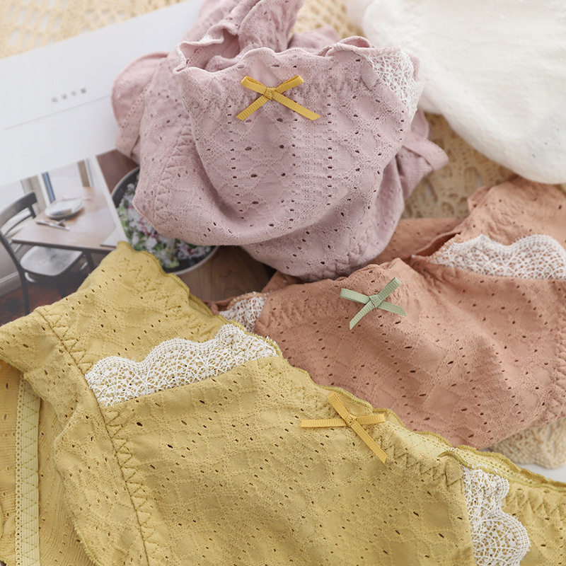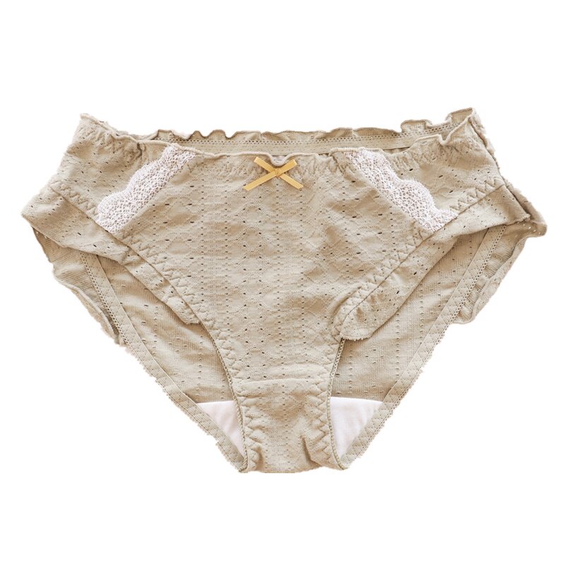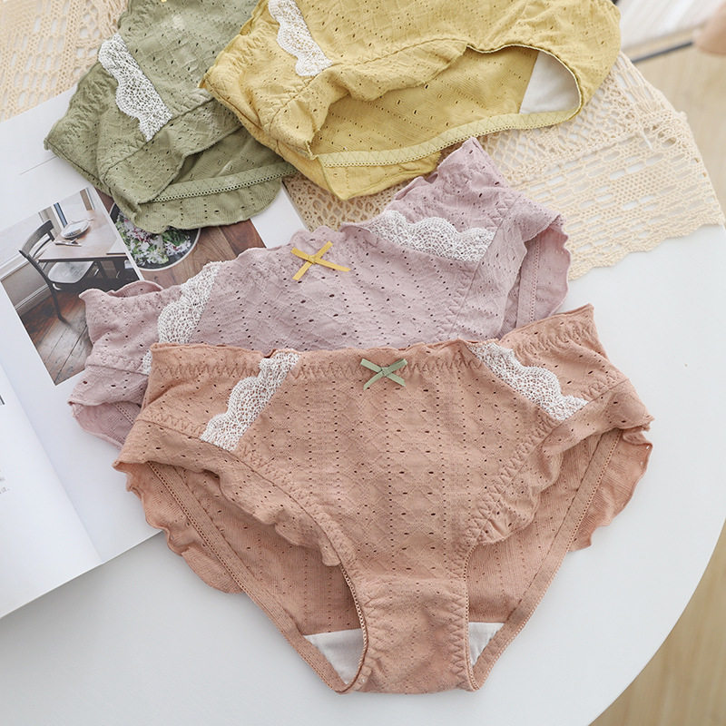 Breathable Escort-AAA Antibacterial Briefs Female Cotton antibacterial lace lotus leaf edge mid-waist triangular trouser butterfly knot