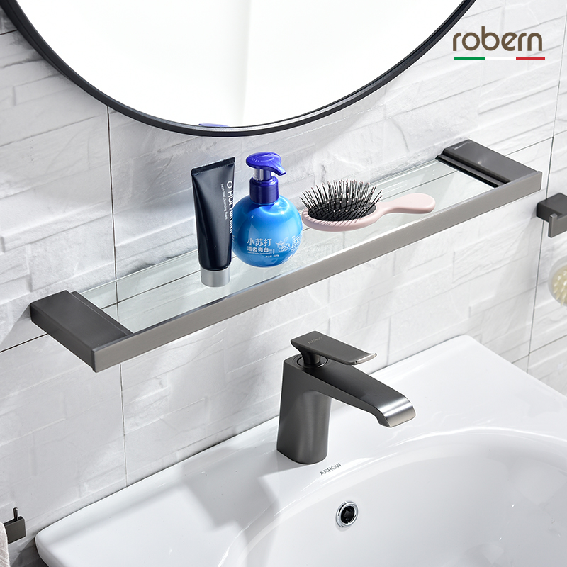 robern stainless steel makeup room bathroom shelve single layer glass make-up bench light lavish wire drawing gun grey