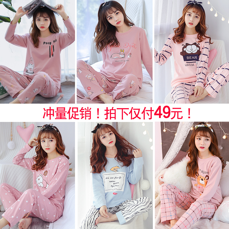 Korean version of pajamas women spring and autumn pure cotton long sleeve cartoon casual can wear home clothes two-piece suit autumn and winter cotton