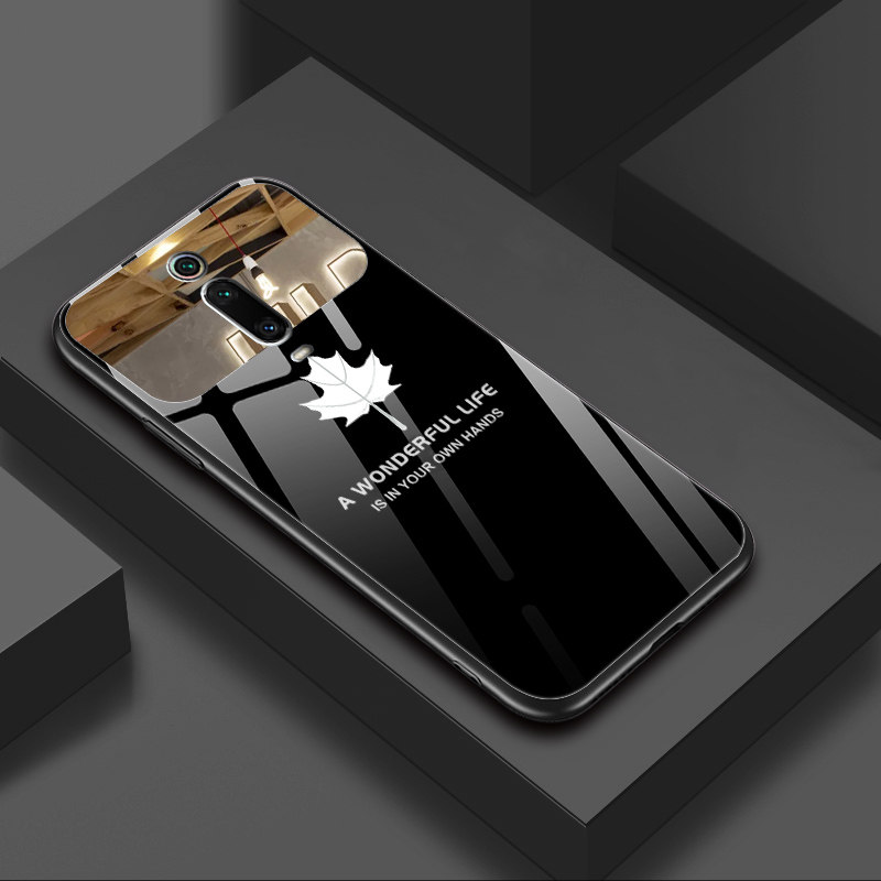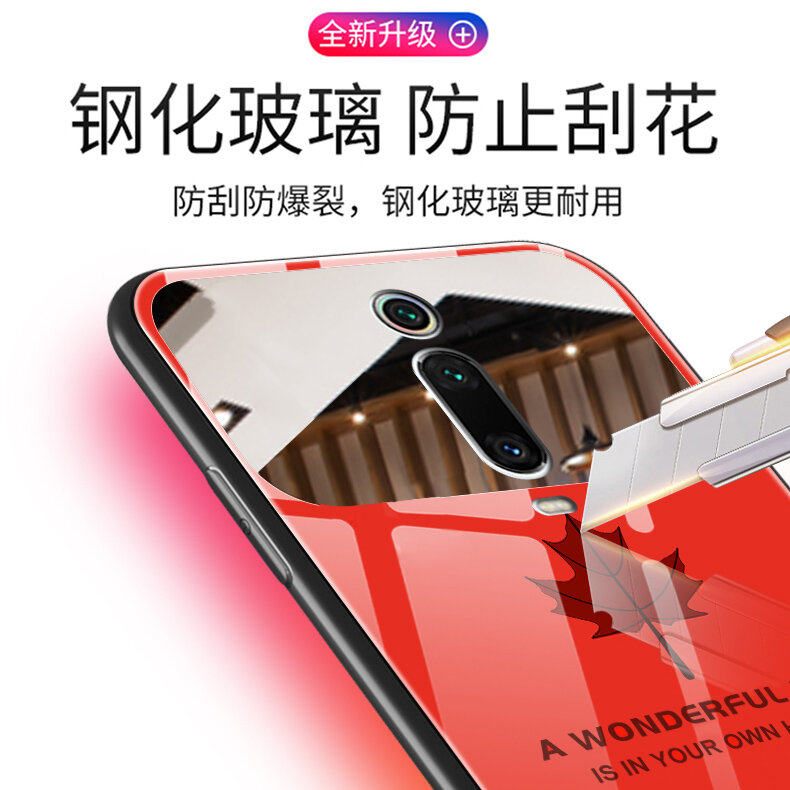 Suitable for red rice k20 k20pro mobile phone protection shell new mirror glass silicone full package soft edge protective sleeve k20pro minimalist maple leaf male and female with personality high-end mirror practical makeup mirror