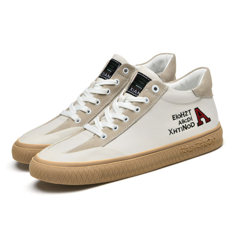 Tide brand white shoes men's leather wild Korean version anti-foot odor first layer cowhide men's medium and high barrel four seasons casual shoes