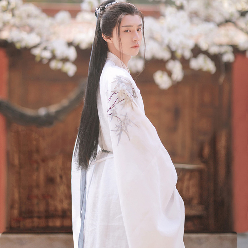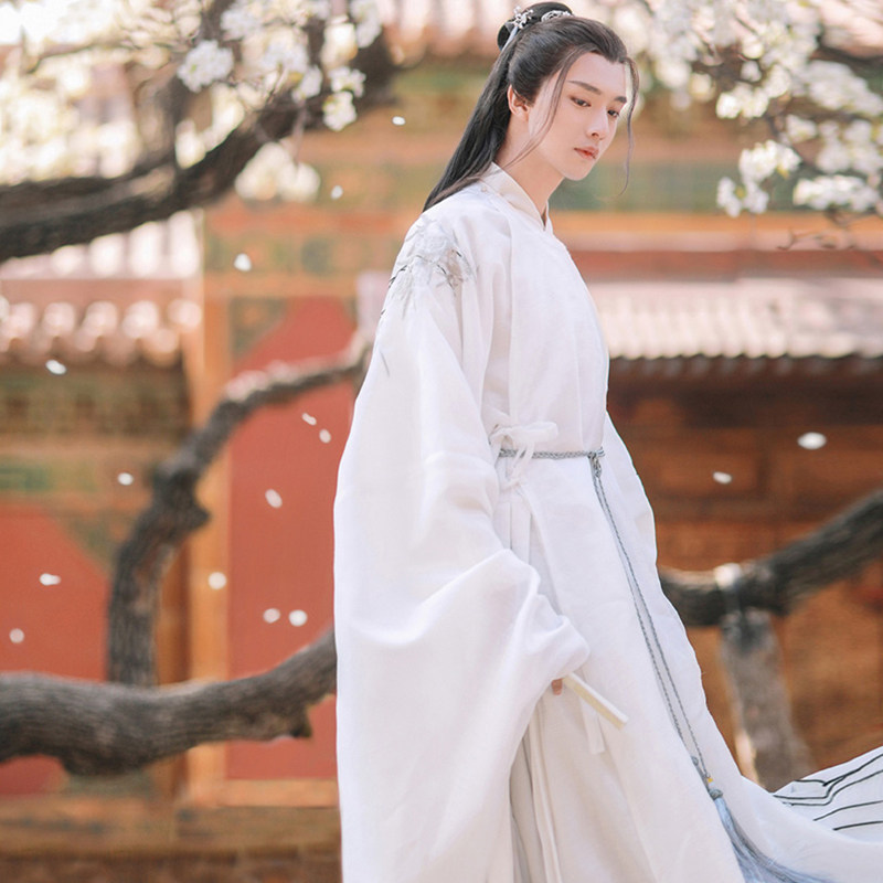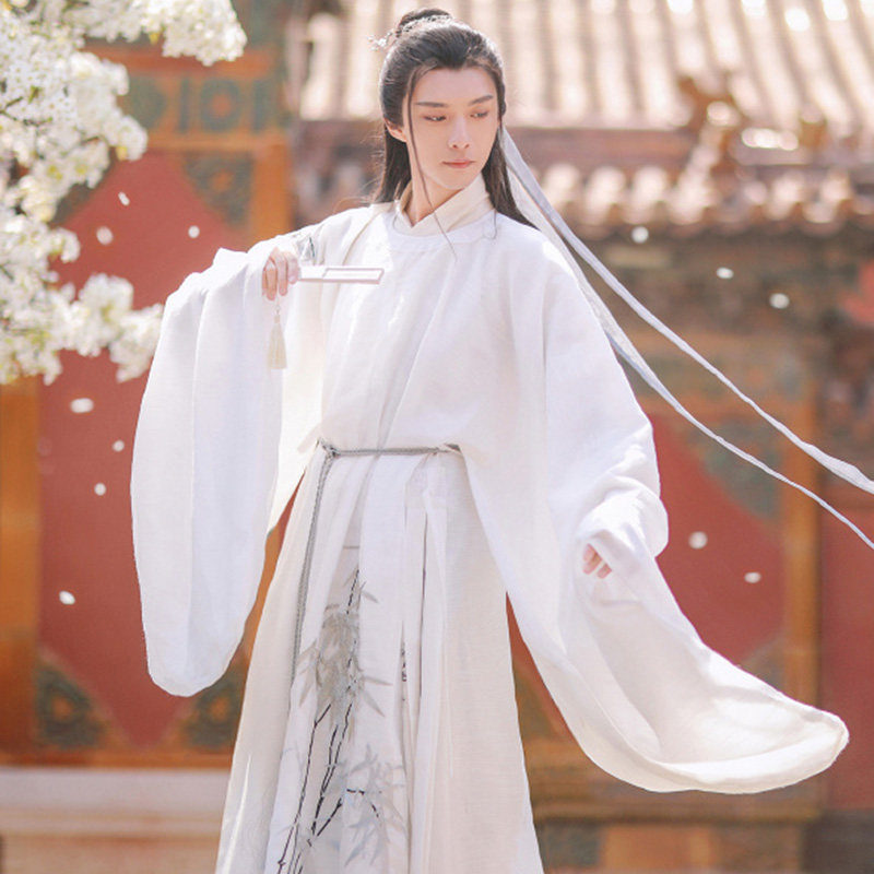 Ming round neck robe Hanfu white ancient style men lovers fairy qi boys set Chinese style ancient costume full spring and autumn