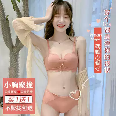 No trace underwear women's small breasts gather without steel ring underwear set without shoulder strap non-slip students thin adjustable bra