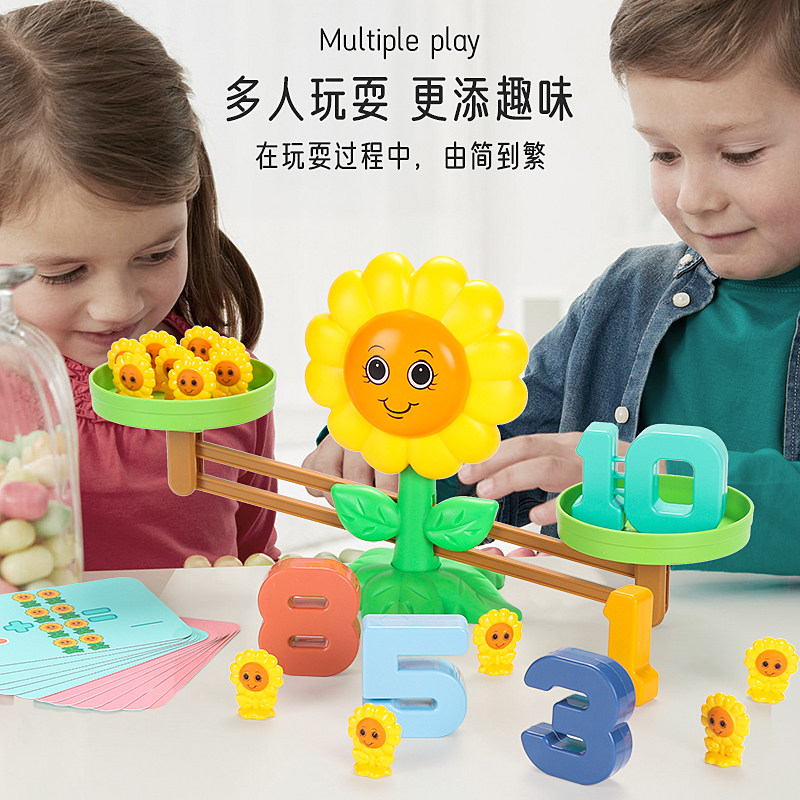 Digital balance scale plant children's toys parent-child board game interactive puzzle thinking training addition and subtraction balance stacking music