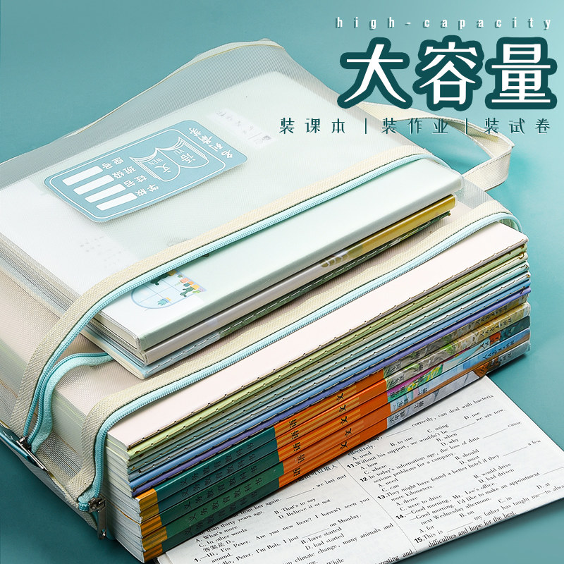Subject classification file bag zipper paper test paper storage bag primary school students hand carry book bag Chinese mathematics English homework bag students use a4 large capacity transparent mesh information subject stationery bag