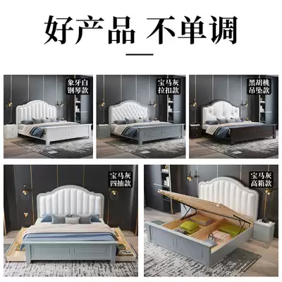 American solid wood bed 1 8m European simple double bed 1 5m Light luxury storage bed Small apartment master bedroom single bed