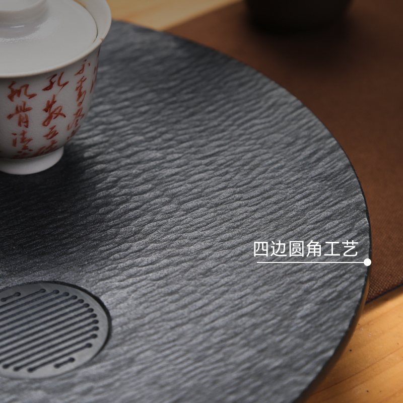 Natural black gold stone tea tray Simple small household light luxury modern tea table drainage round tea sea dry and wet bubble tray