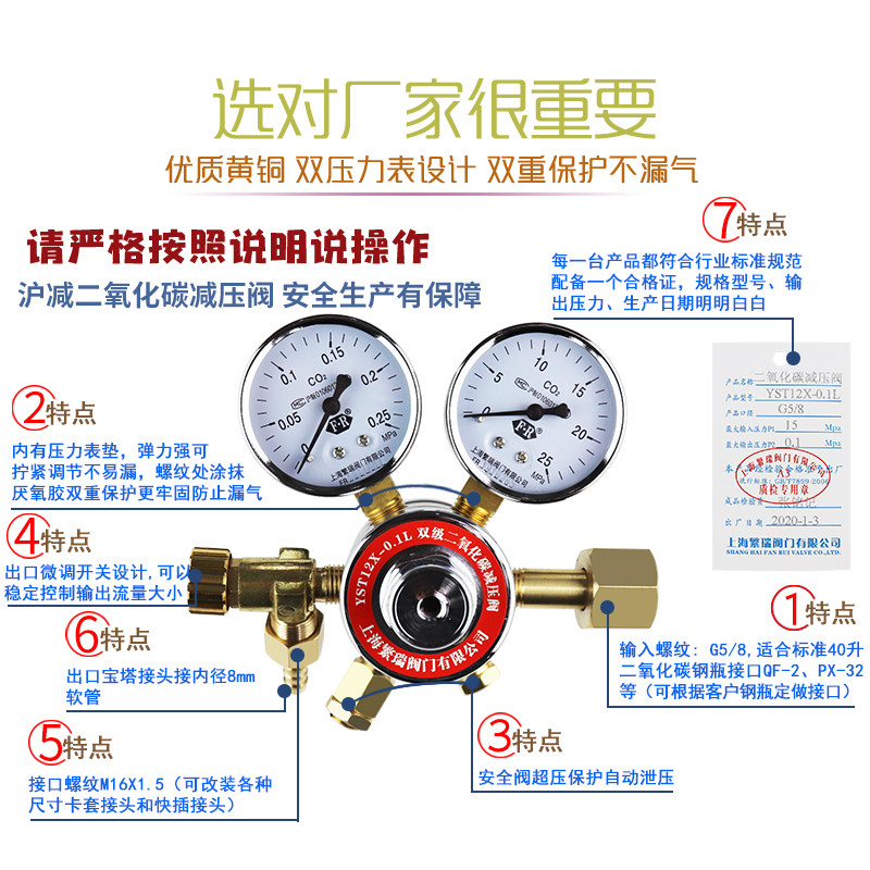 Shanghai minus pressure reducing valve dual-class carbon dioxide reducing valve YST12X-0 1L large steel bottle 40 liters double table 25 * 0 25