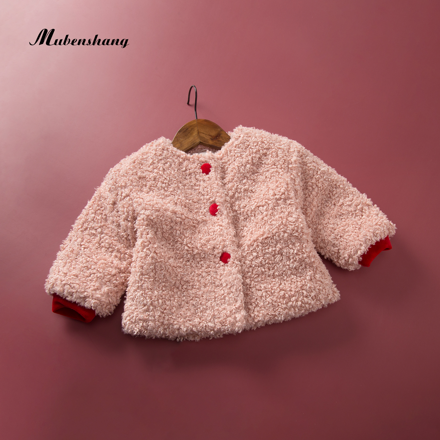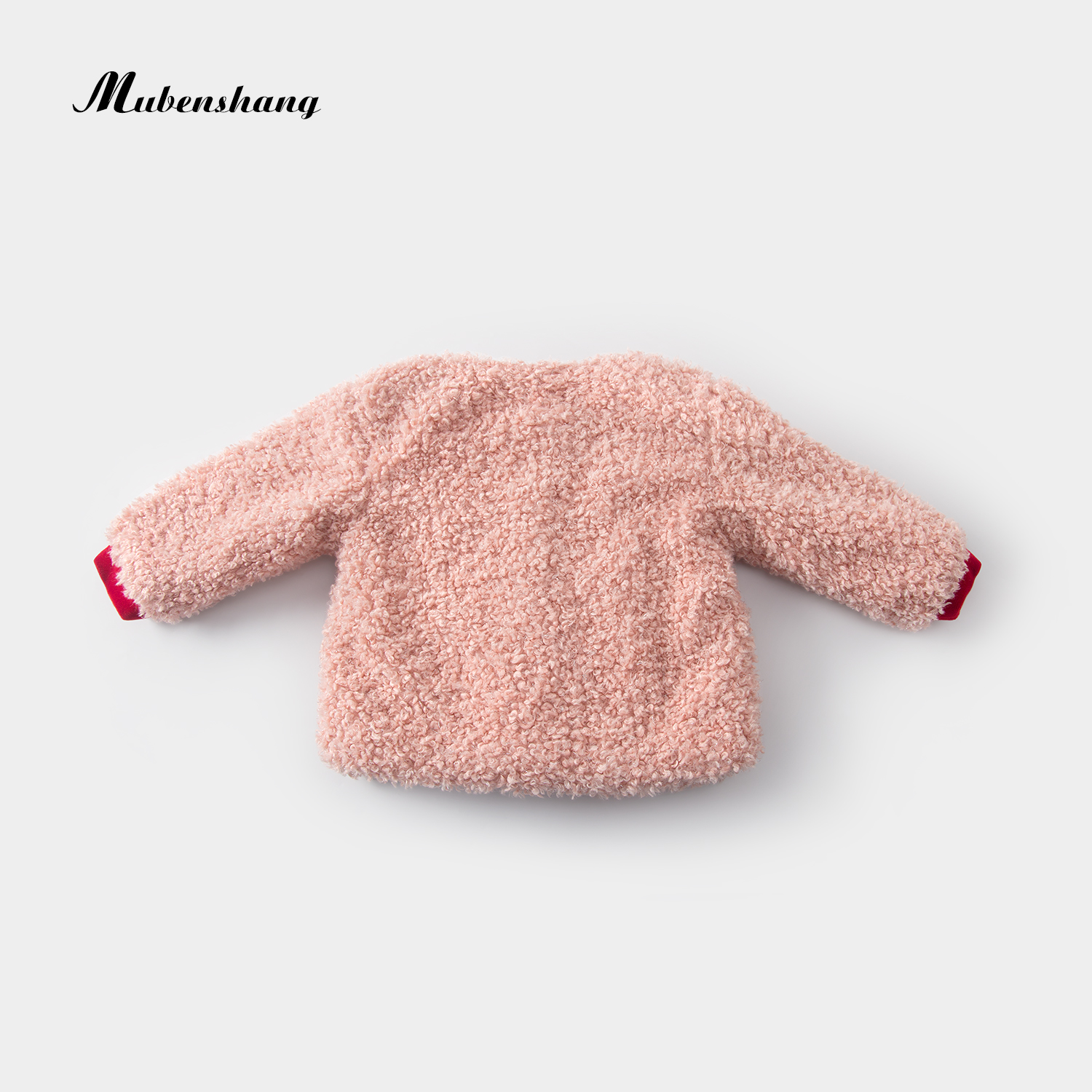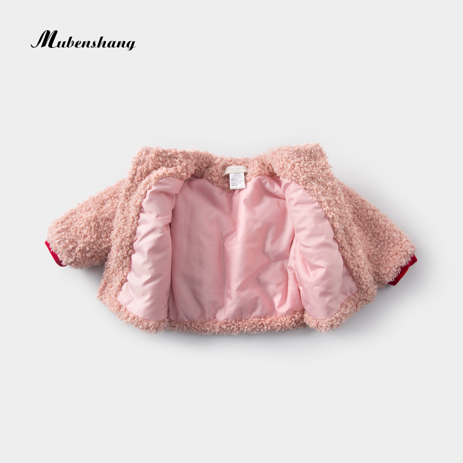 Mubenshang girl's coat autumn and winter baby autumn quilted thick lamb velvet girl cute short Korean version