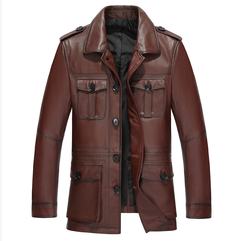 2022 autumn and winter men's fertilizer plus size leather jacket top layer cowhide jacket lapel motorcycle Haining fat jacket