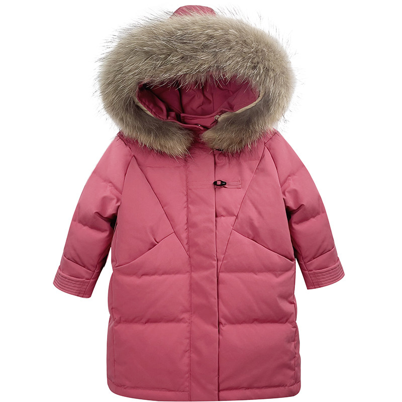 Children's Down Girl in Long - Ten 2021 gas children thickened white duck velvet new hair - collar baby's dress