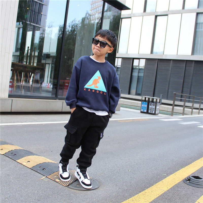 Boy Autumn Winter Kangaroo Pants Casual Long Pants Sports Pants Children Tide Pants Plus Suede Thickened Integrated Suede Pants
