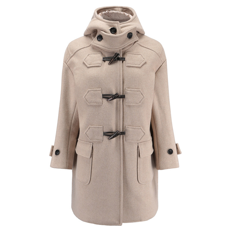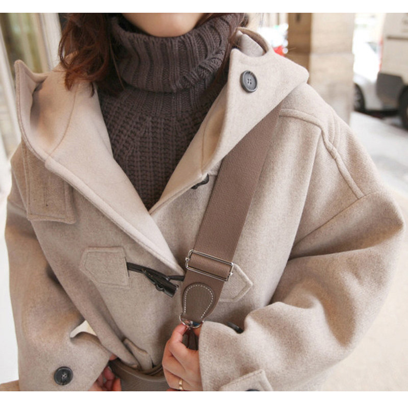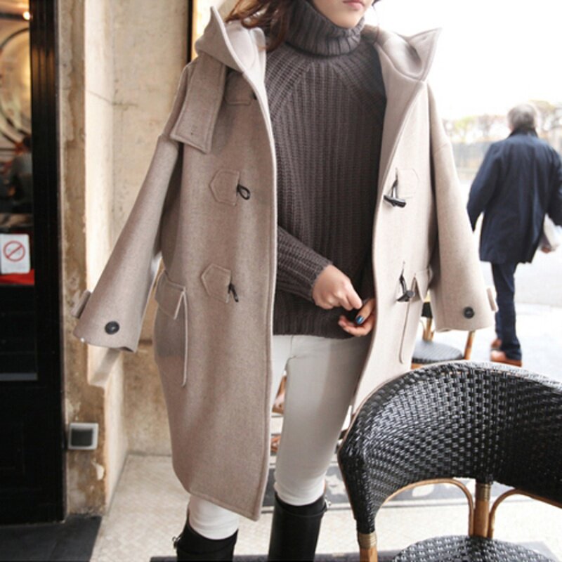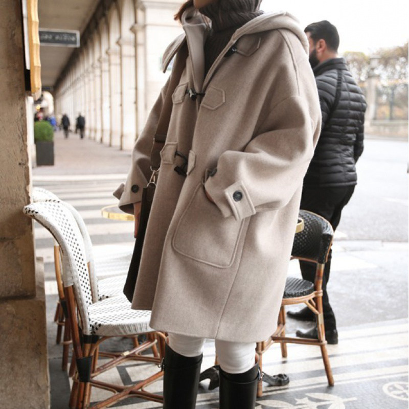 Horn buckle cashmere coat women's autumn and winter 2022 new loose and thin retro age-reducing thickened hooded woolen coat
