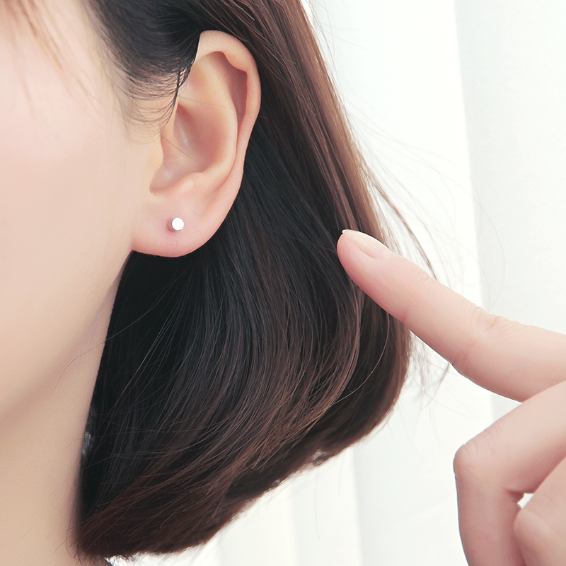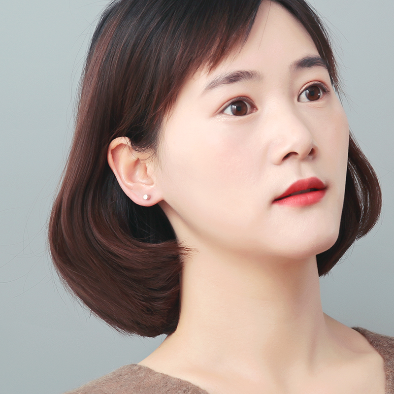Pure silver ear screw screw tip high sense simple small earrings female cold wind earbuckle ear sleep free