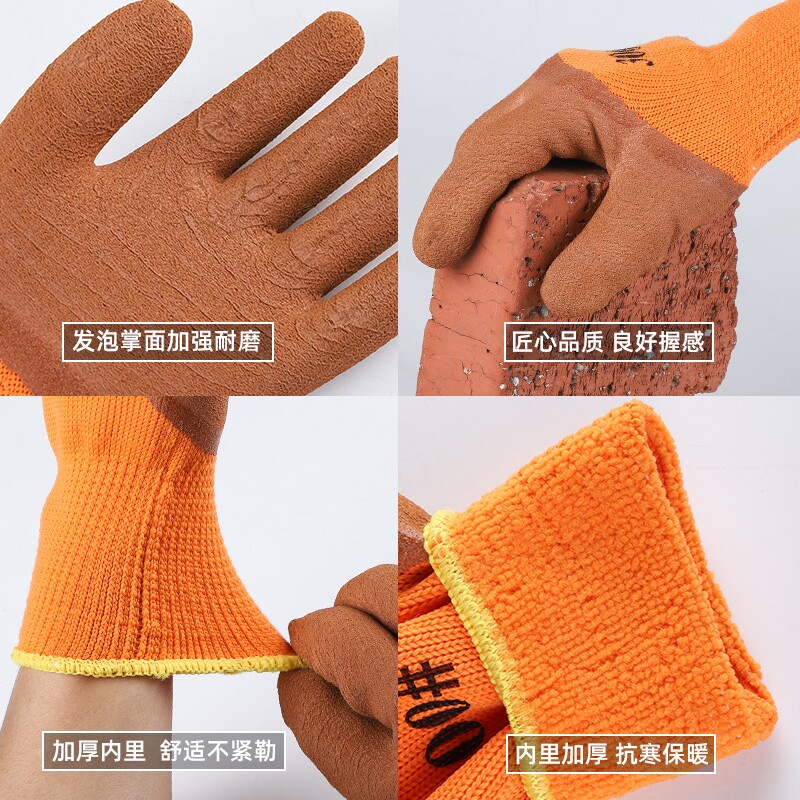 Glint thickened wool circle glove Lauprotect warm foaming wrinkled work abrasion resistant anti-slip worksite plastic impregnable