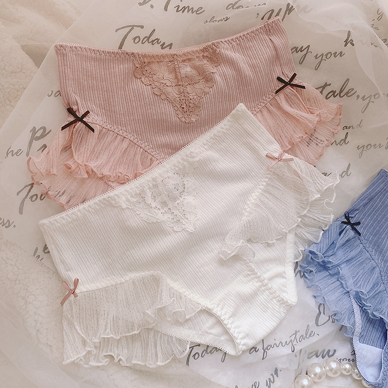 Underwear women's Japanese lace sweet seamless pure desire slit lace shorts bow mid-waist sexy retro girl