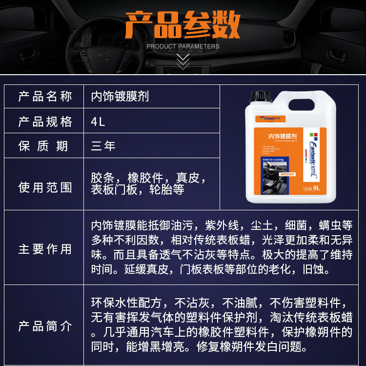 Car interior coating care agent genuine leather seat instrument panel plastic polishing maintenance renovation concentrated vat