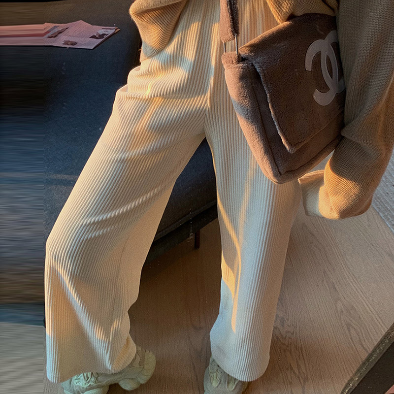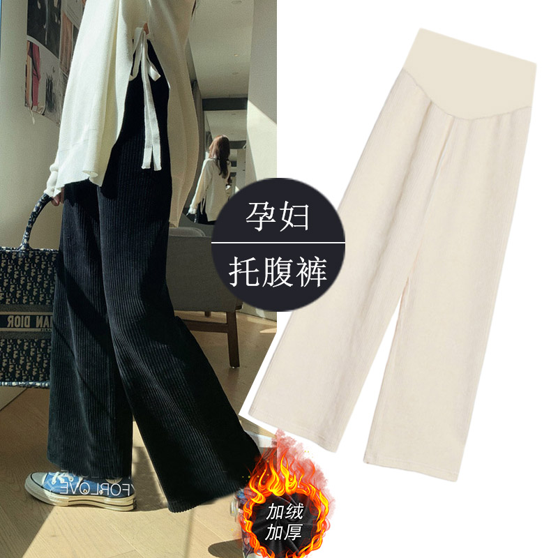 Maternity knitted pants Harun Luo Radish pants Autumn and winter thickened velvet wide-legged pants wear fashion corduroy pants