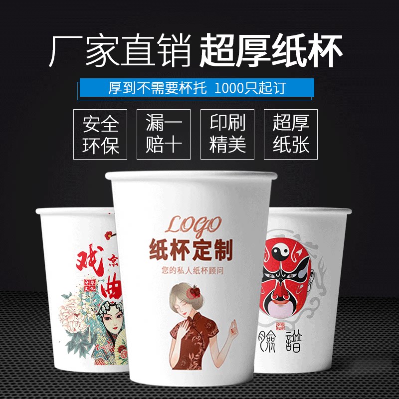 Paper cup custom printed logo disposable cup thickened custom advertising water cup 1000 packs for commercial household marriage