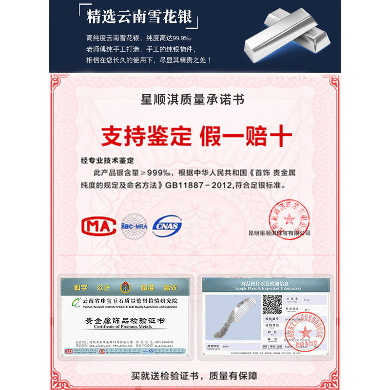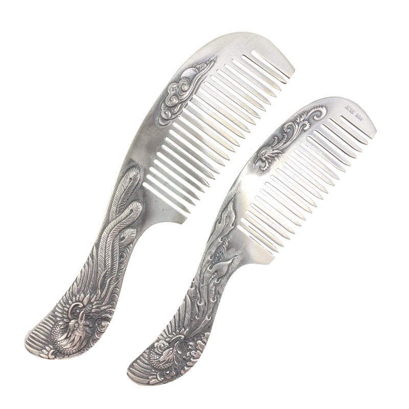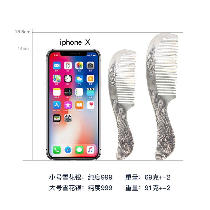 Silver comb 999 sterling silver handmade comb Yunnan snowflake silver scraping ripe silver to girlfriend snowflake silver comb scraping