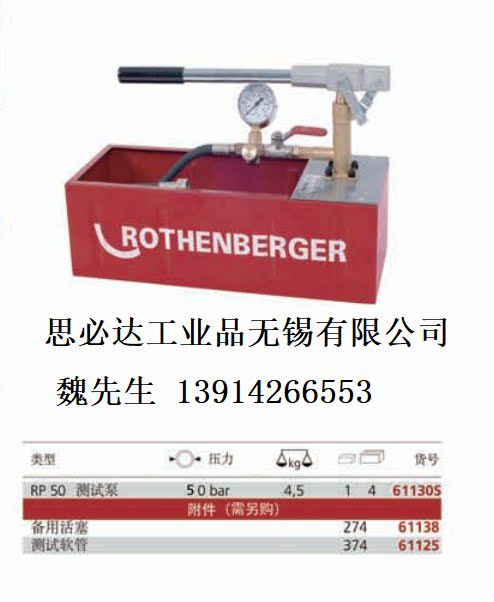 German Rosenborg test pump ROTHENBERGER test pump water tank pump 61130 Manual stainless steel