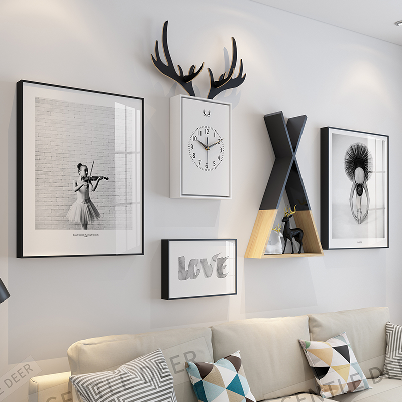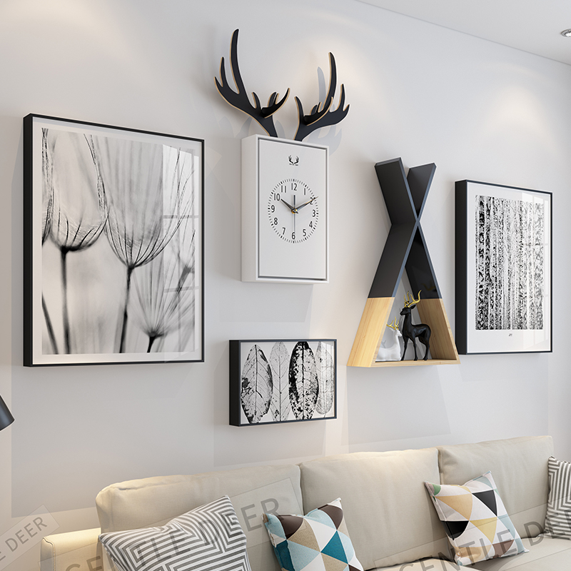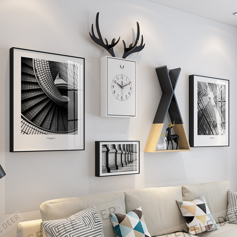 Nordic Living Room Decoration Painting Modern Minimalist Sofa Background Wall Mural Black & White Grey Style Creative Combo Hung Painting