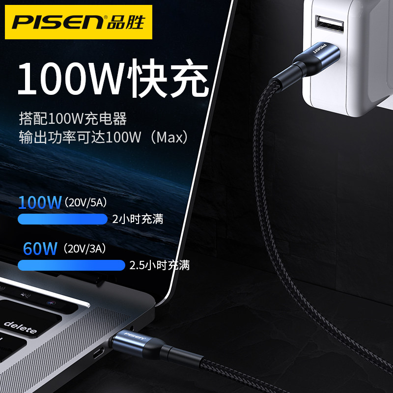 Pinsheng PD100W data cable double-headed type-CtoC charging cable USB-C2C male to male 60W suitable for Huawei Xiaomi Apple notebook tablet phone switc