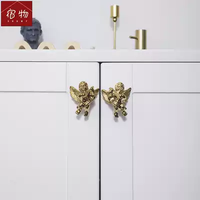 showy brass French little Angel handle Drawer Wardrobe Door whole cabinet titanium alloy color retro small handle