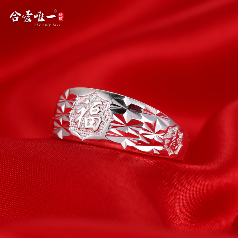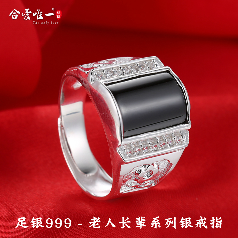 999 foot silver ring female sterling silver Fuzi old man ring live mouth male elderly man to send mother and grandma birthday gifts