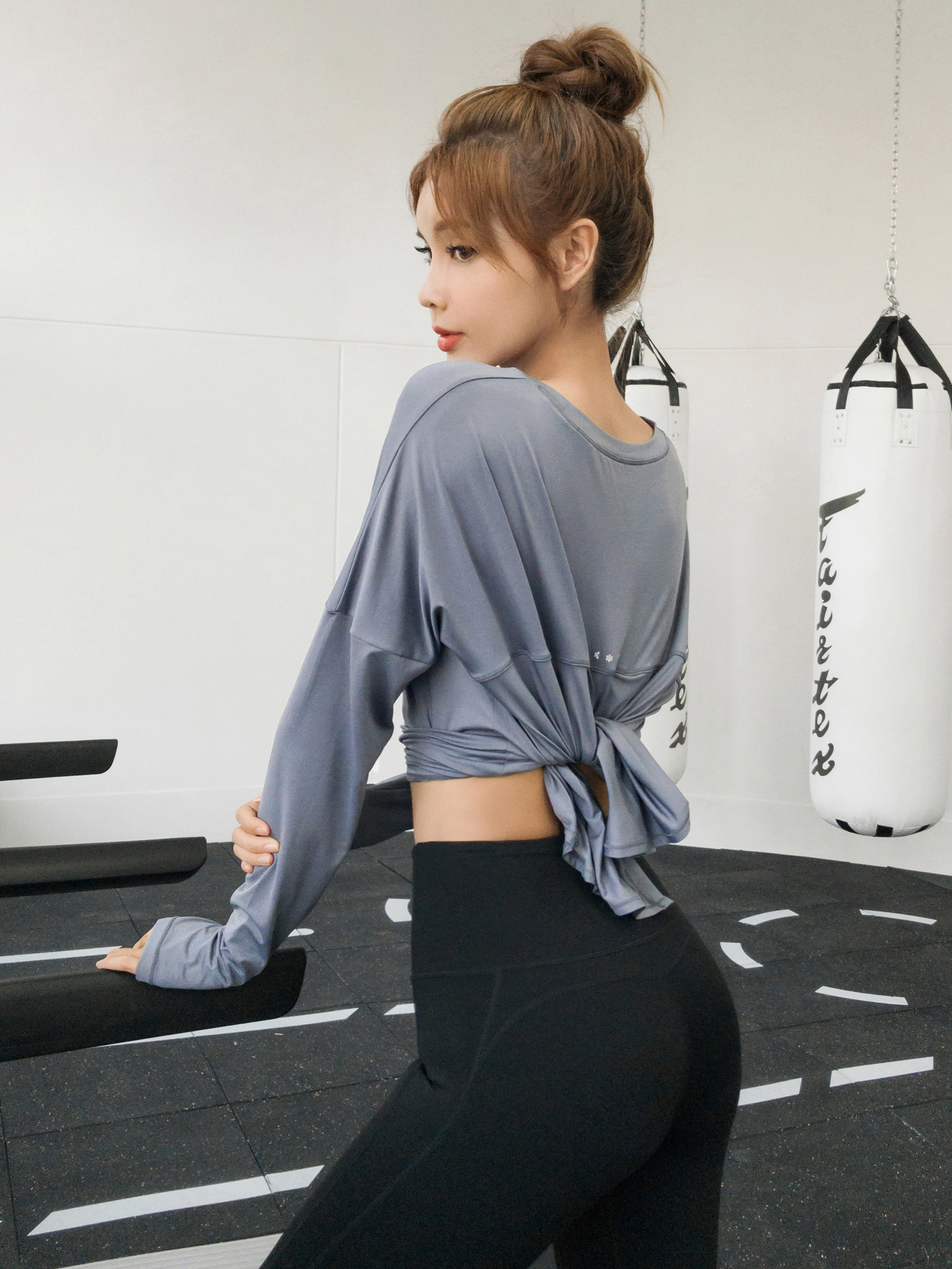 Sexy slit sportswear long-sleeved t-shirt women's loose quick-drying yoga clothing top spring and summer running fitness clothing net red