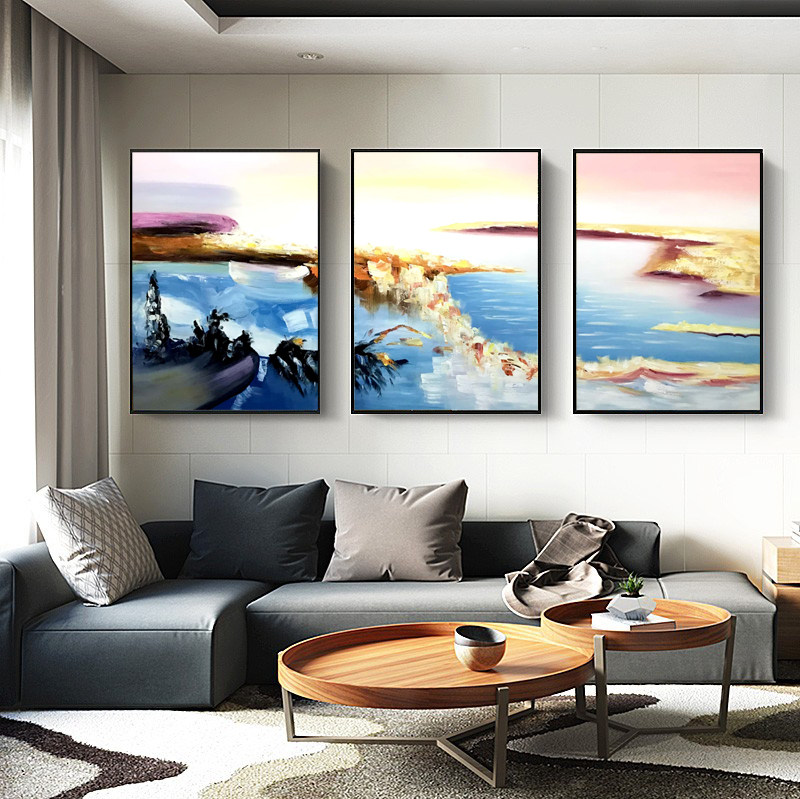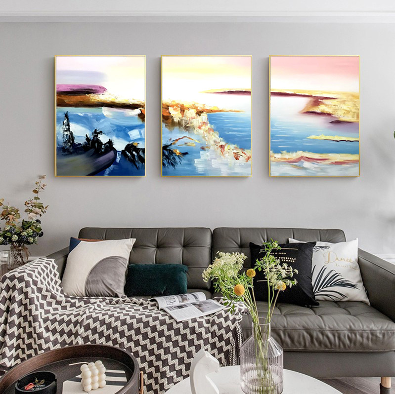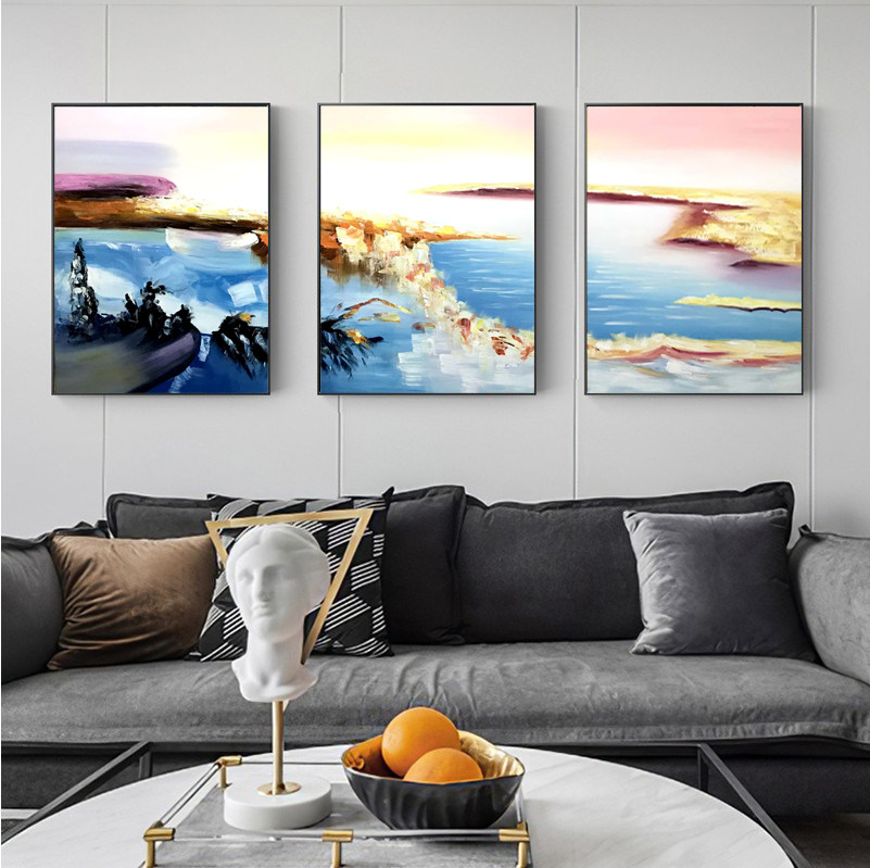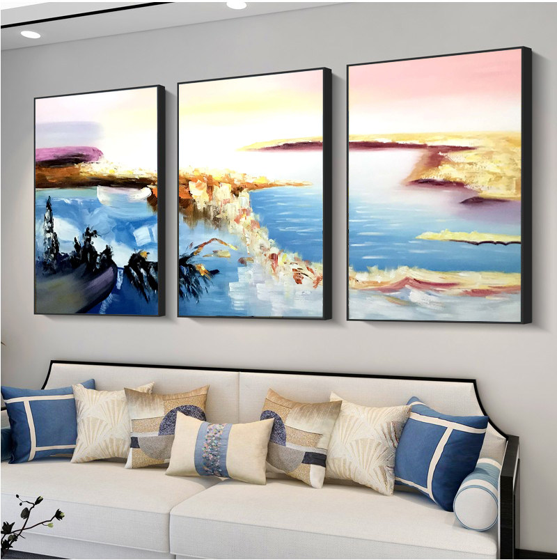 Living room sofa background wall decorative painting triptych Nordic abstract hanging painting simple modern hand-painted oil painting