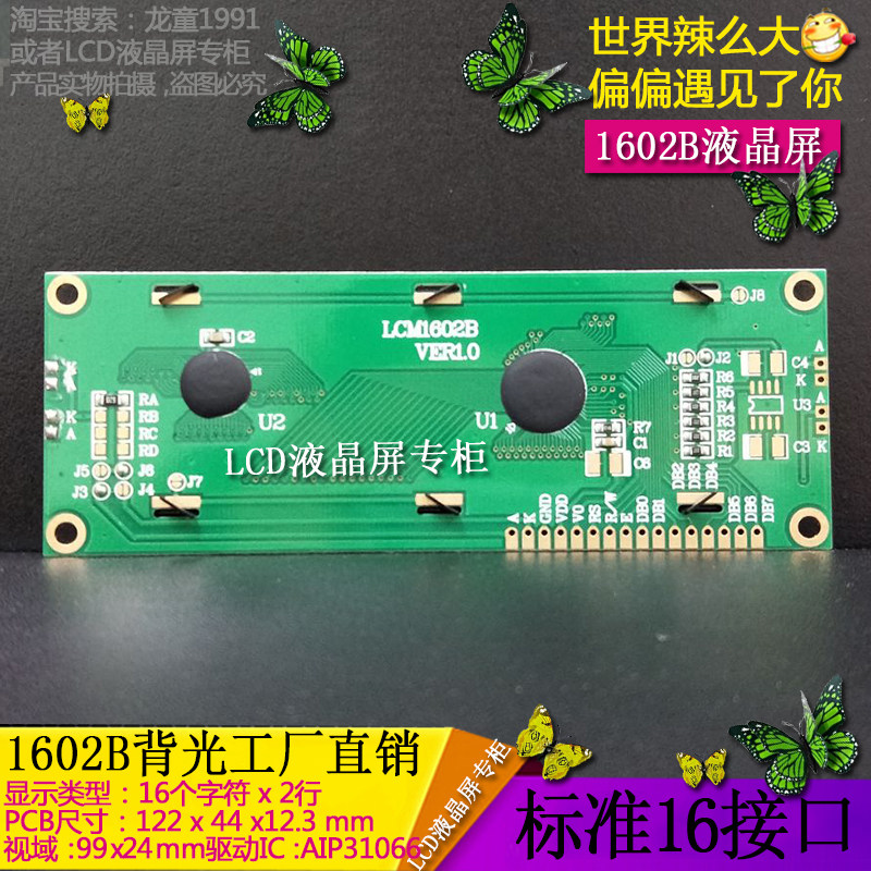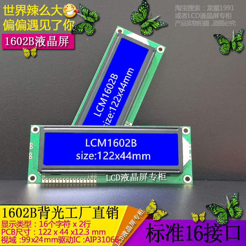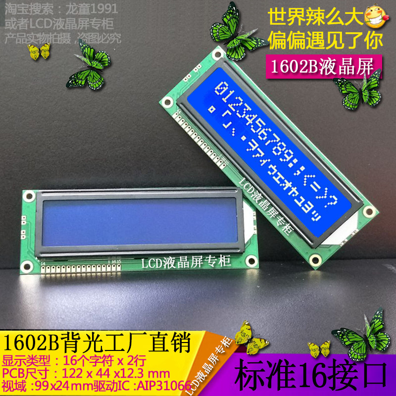 Original manufacturer LCD1602B LCD screen LCM1602 large character display module blue screen back Everbright promotion-Taobao