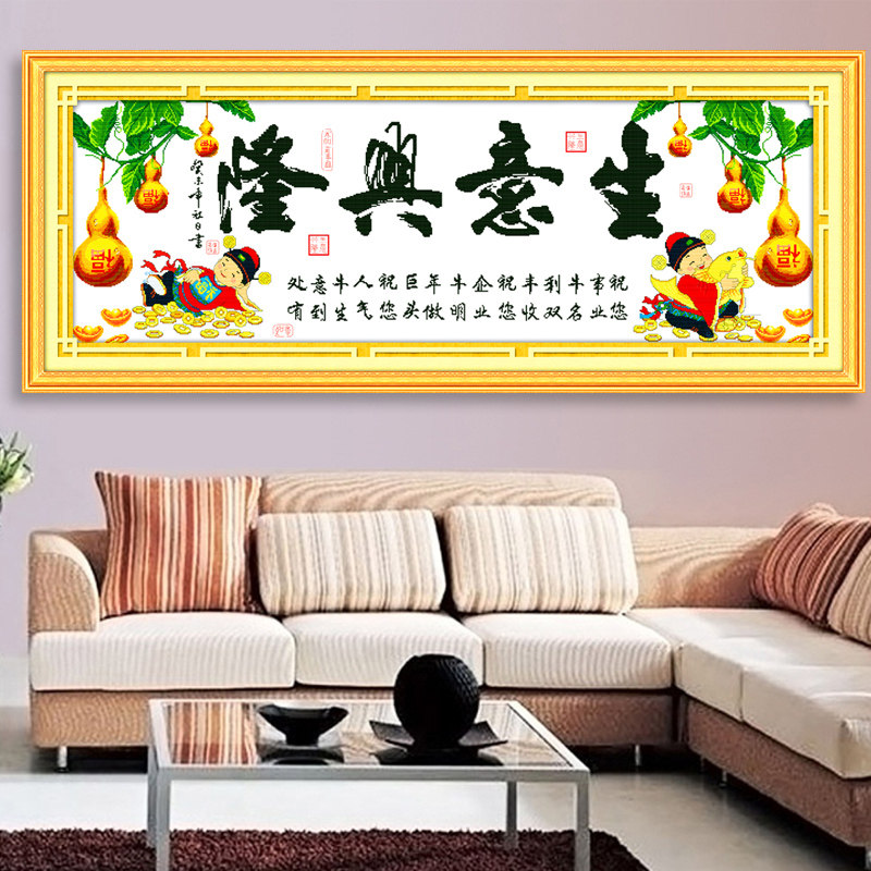 New printed cross stitch business booming God of wealth blessing office simple living room large calligraphy calligraphy and painting line embroidery
