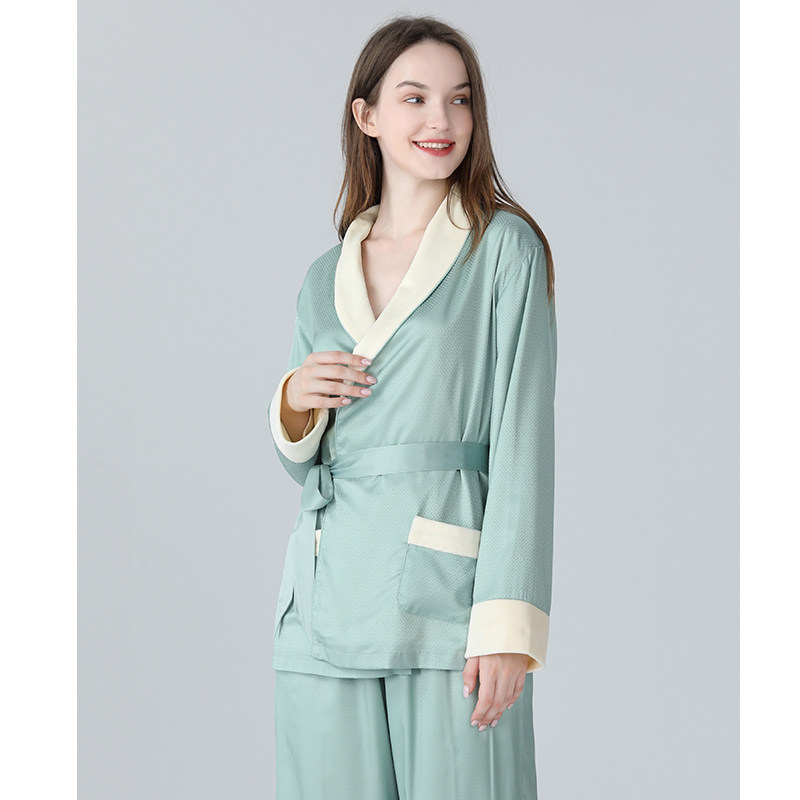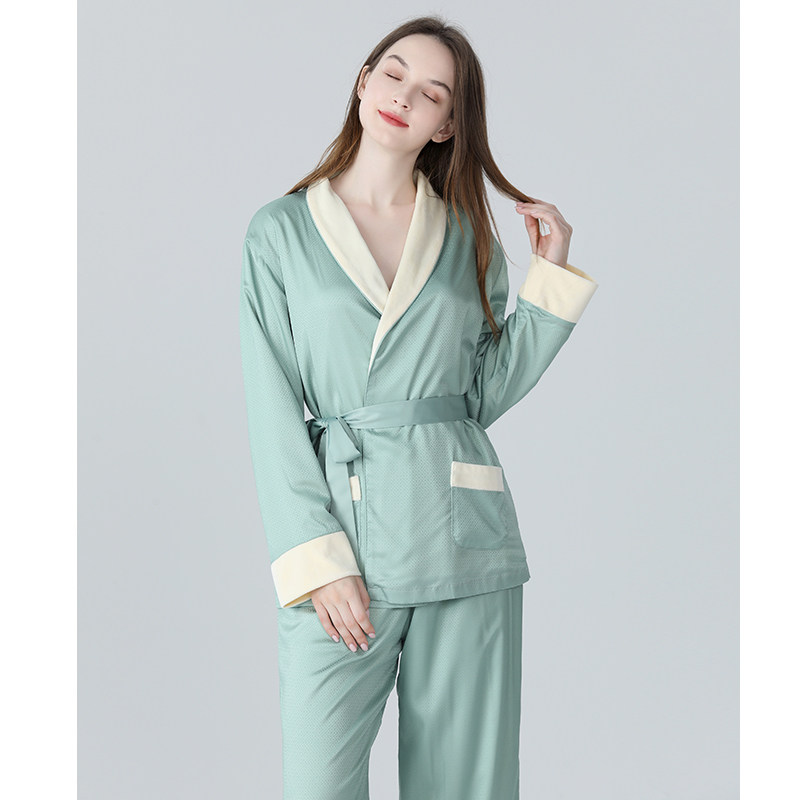 IIZZINI Pyjamas Women's Winter Long Sleeve Ice Velvet Thickened Retro Ring Grain Warm Home Suit Suit