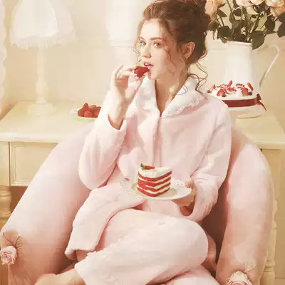 RoseTree coral velvet pajamas women's autumn and winter plus velvet sweet and cute thickened home service suit flannel