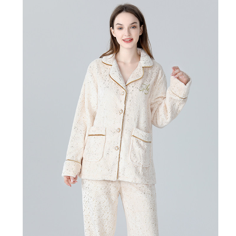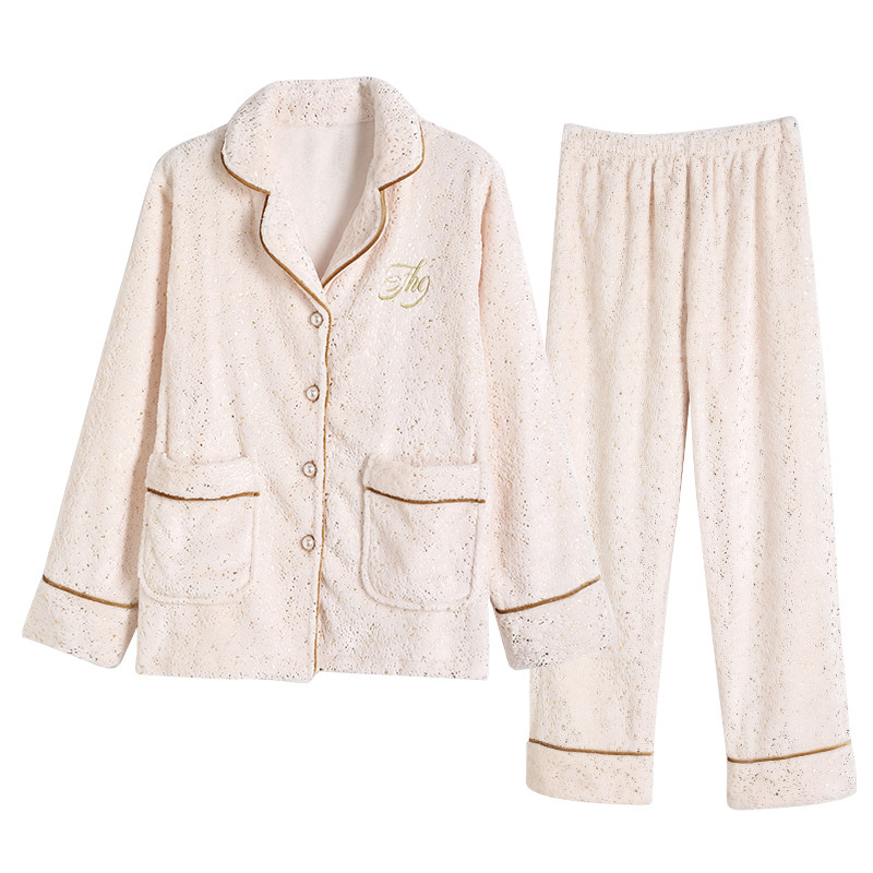 IIZZINI pyjamas woman winter long sleeve coral suede bronzed minimalist fashion long pants sweet and beautiful home suit suit