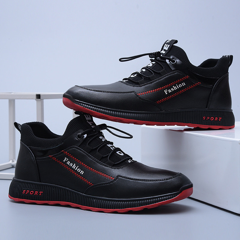 2021 new spring shoes men's wave shoes leather face waterproof non-slip and breathable sliding board shoes casual leather shoes work shoes
