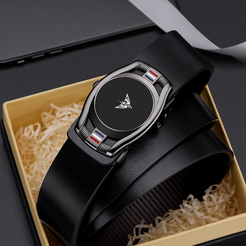 Royal Rav Laurenma ball men's leather strap genuine leather automatic buckle belt No tooth Nets wearing young pure cow leather pants with personality tide
