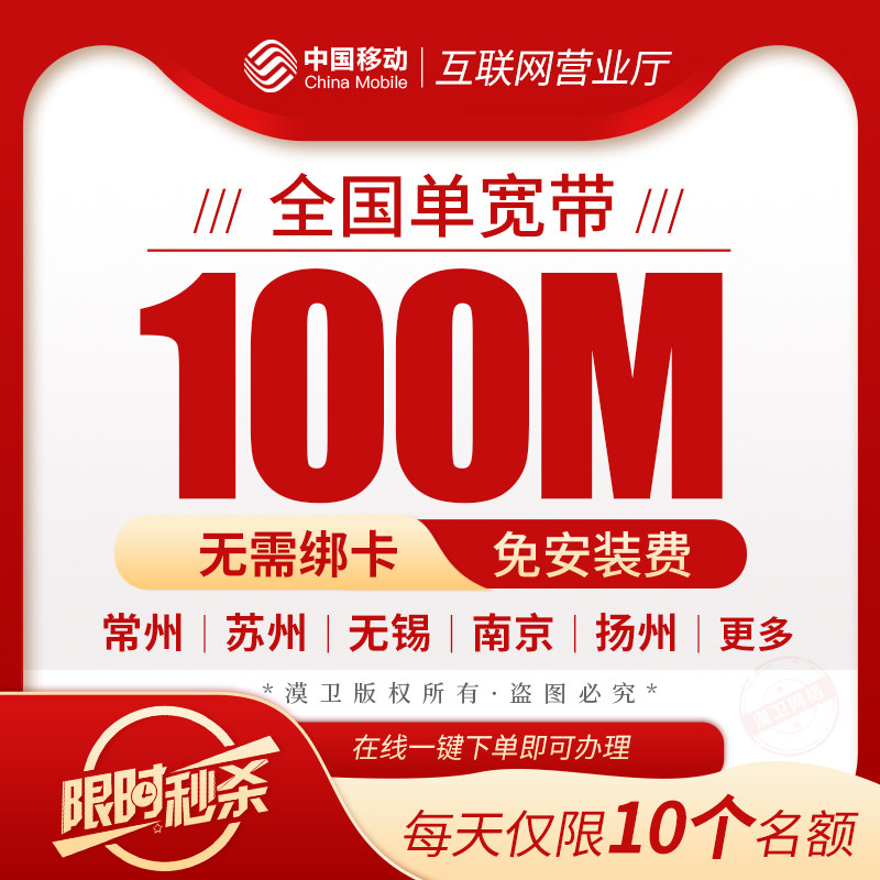 Jiangsu Mobile broadband 100M 20 yuan / month Jiangsu Mobile broadband 200M 30 yuan / month Suzhou 150M-1 year Suzhou 200M-1 year Wuxi 150M-1