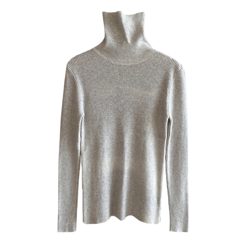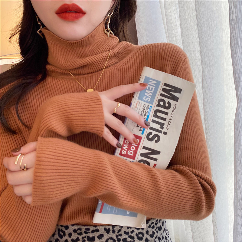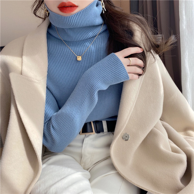 High-neck sweater women's 2022 autumn and winter new high-neck knitted sweater Slim Western style white bottoming shirt