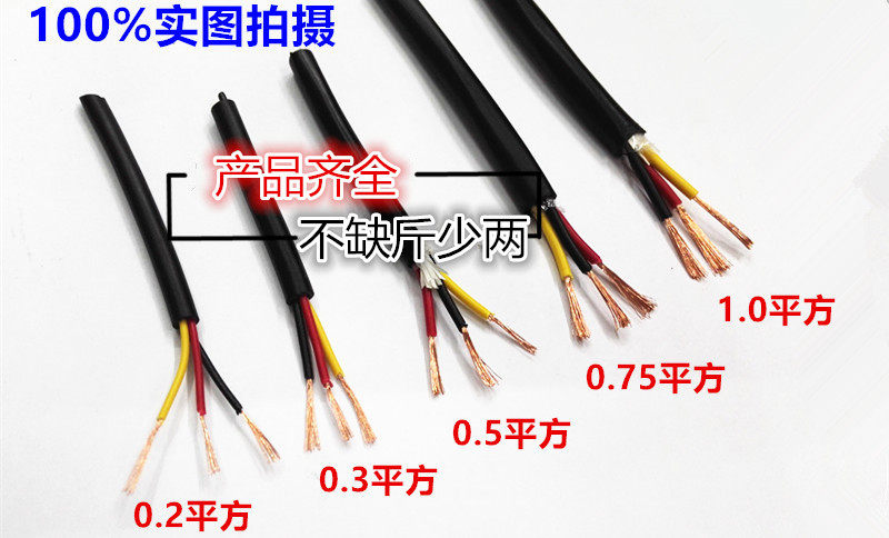 National standard copper core cable 3 core sheath signal light switch power cord 0 12 0 2 0 3 0 5 square
