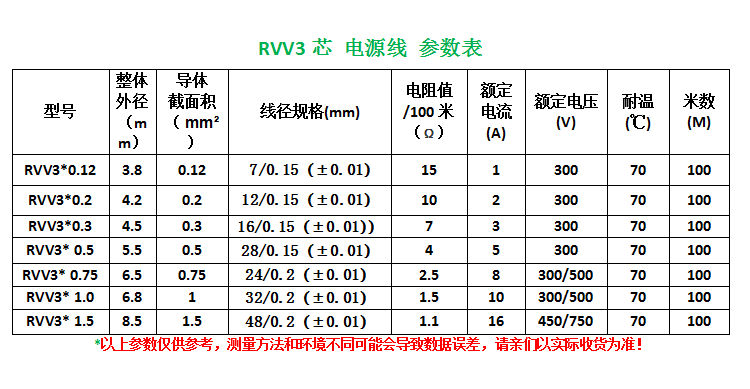 RVV3*0 12 100m RVV3*0 2 100m RVV3*0 3 100m RVV3*0 5 100m RV