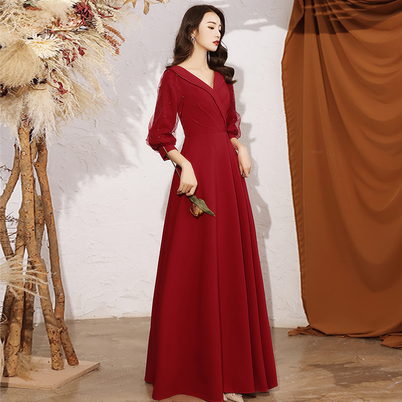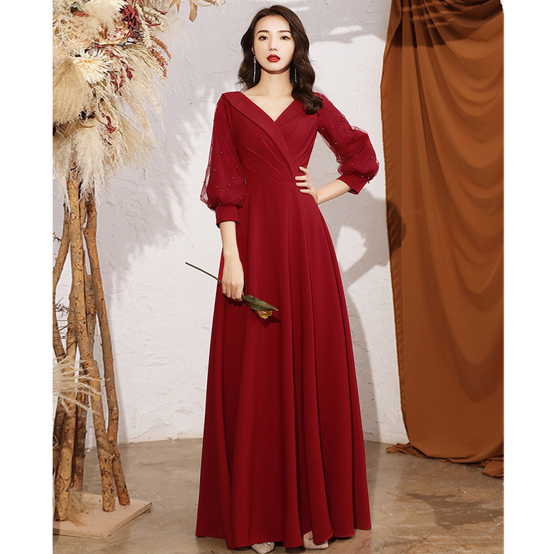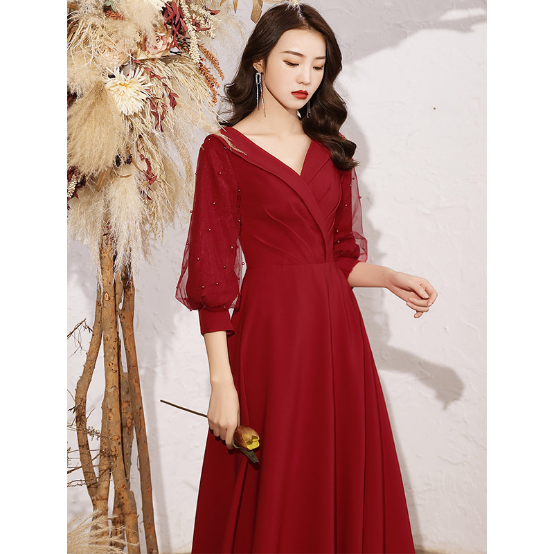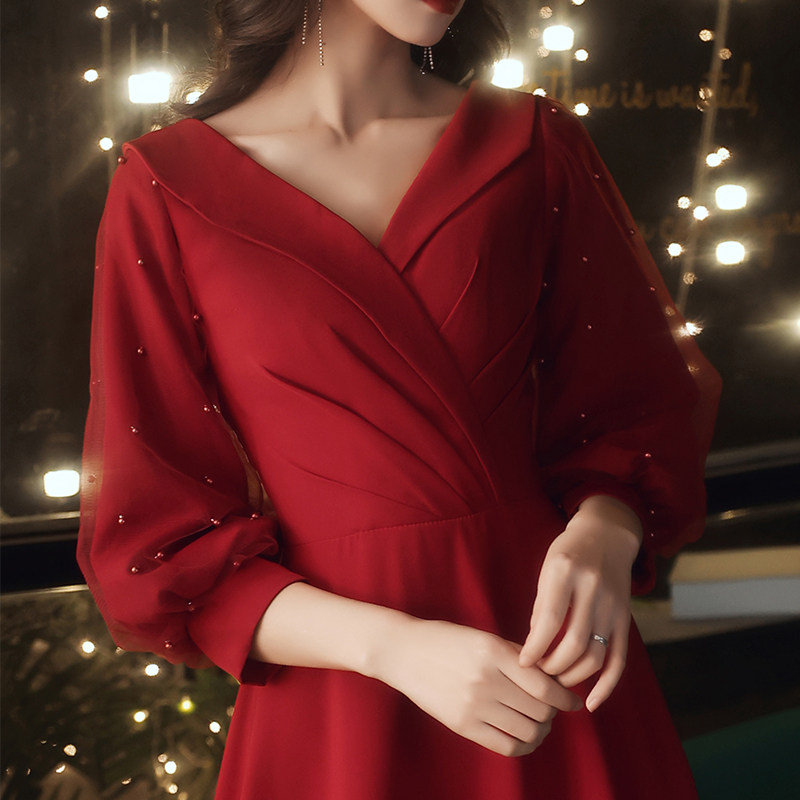 Toast dress bride 2021 new red long sleeve temperament back to the door usually can wear wedding evening dress skirt women winter