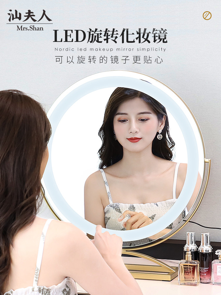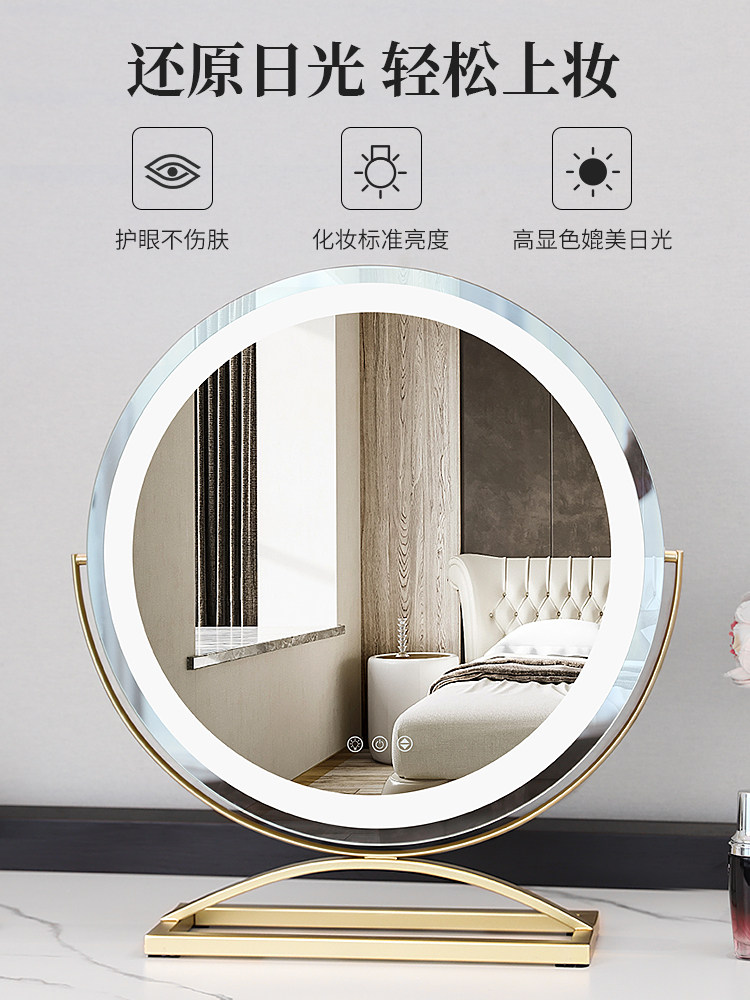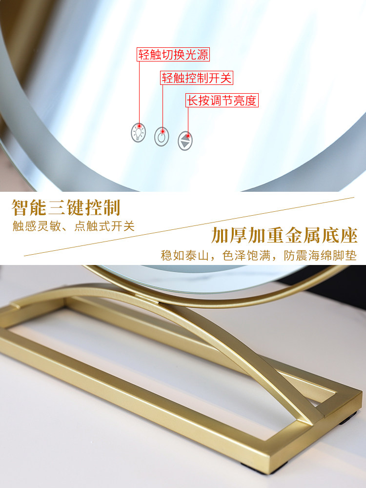 Desktop mirror makeup mirror desktop net red light luxury dresser large mirror with lamp bedroom simple European style vanity mirror