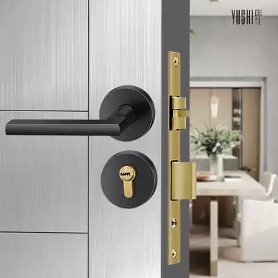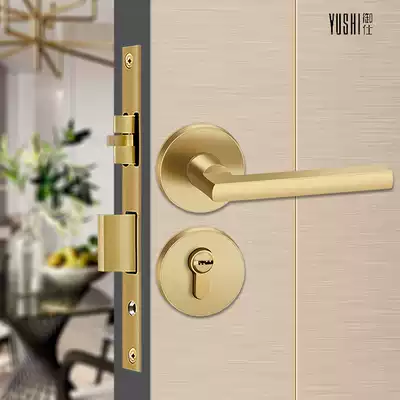 Yushi all-copper light luxury door lock Indoor modern simple Nordic bedroom household wooden door silent two-piece magnetic lock copper